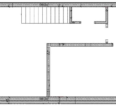 Dwupoziomowa forma ze schodami, tworząca wyjatkową przestrzeń wypoczynku.