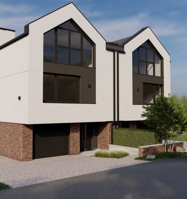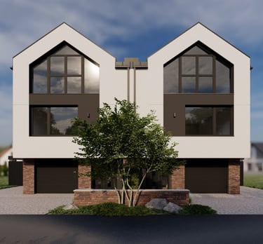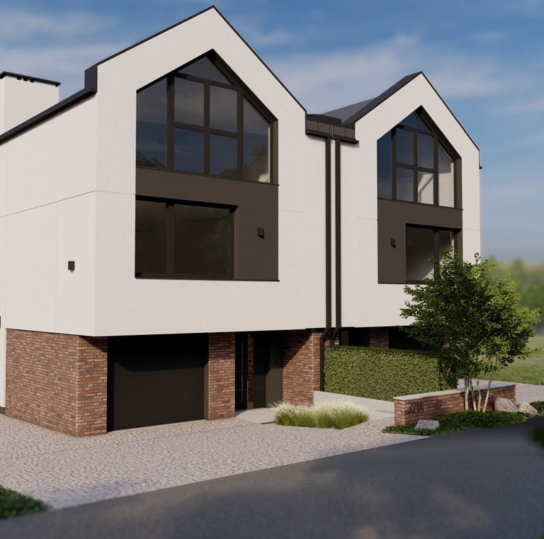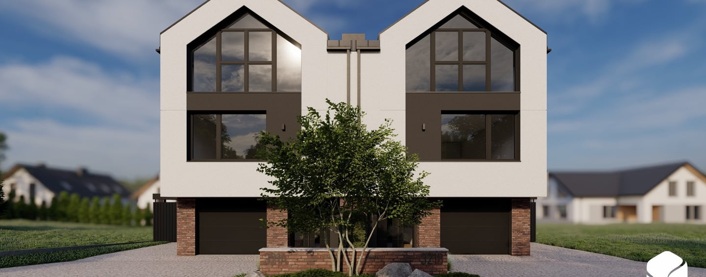 Modern semi-detached homes nestled in Kraków’s serene Wzgórza Krzesławickie district, crafted for family comfort and nature’s embrace.
